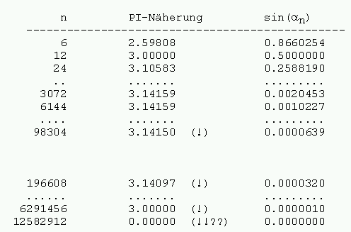 die Folgen der internen Rechenungenauigkeit (Anzumerken ist, daß
