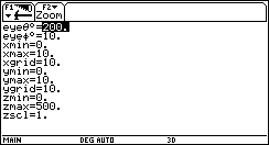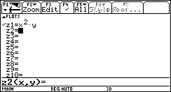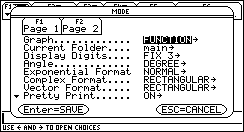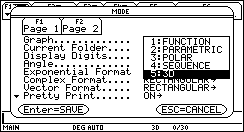 Um eine Funktion in zwei Variablen darstellen zu können, müssen einige Einstellungen vorgenommen werden. Durch Drücken der Taste [MODE] gelangt man in folgendes Menü