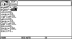 Durch Änderungen der Parameter Eye, Lenght, Center, Grids und Focal werden bei der 3D-Dar-stellung bei DERIVE natürlich auch Änderungen der Flächendarstellung erzielt.