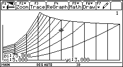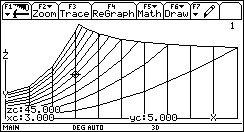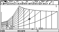 Wichtig ist, dass die Schüler einen Zusammenhang zwischen einer 3D-Graphik und einer 2D-Graphik erkennen. Mit dem TI-92 kann das sehr schön mit Hilfe der Trace-Funktion gezeigt werden. D.h. so-lange man sich auf einer "Kurve" der 3D-Graphik befindet, bedeutet dies, dass eine der beiden Variablen konstant ist.
