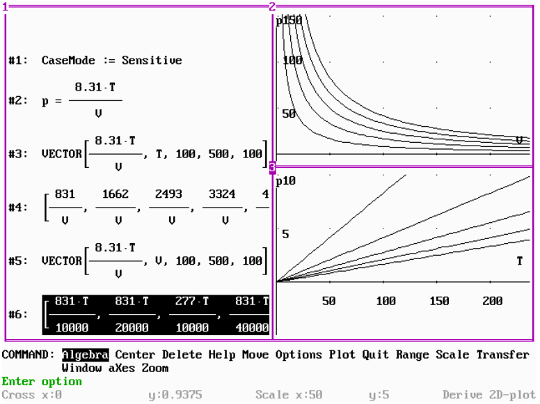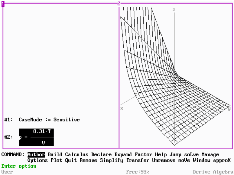 Der Vorteil vom TI-92 gegenüber DERIVE bei solchen Aufgabenstellungen ist, dass man auch Funktionen mit 2 Variablen abtasten und den Definitionsbereich einschränken kann.