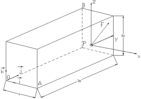 In der Mechanik könnte dieses Problem gelöst werden, indem man die Kraft in drei Komponenten zerlegt und bestimmt mit jeder Kraft ein eigenes Moment um den Punkt 4.
