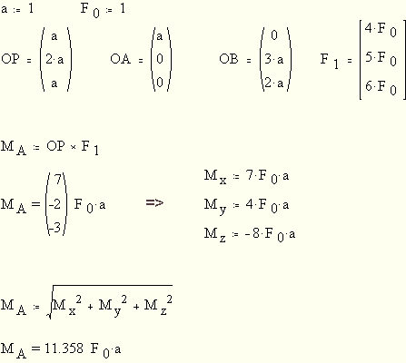 M(A)= AP x F ist der Momentenvektor bezogen auf einen Punkt A der Achse a.
