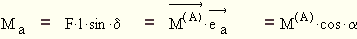M(A) steht also senkrecht auf der Ebene, die von den Vektoren AP und F aufgespannt wird. Damit wird das Moment um die Achse a: