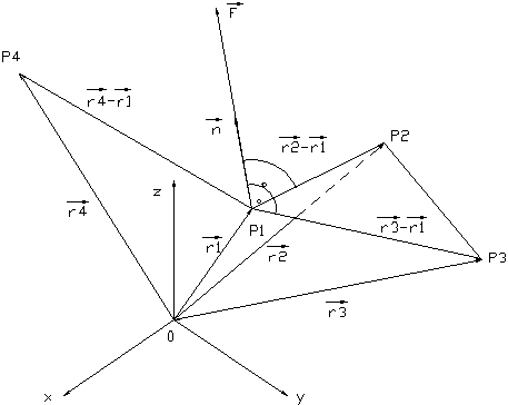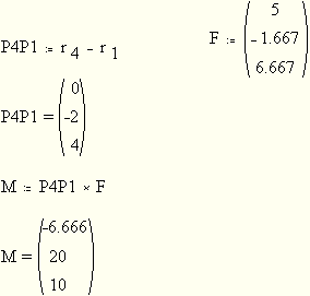 Für das Moment M bezüglich des Punktes P4 braucht man den Ortsvektor P4P1 vom Bezugspunkt zum Angriffspunkt der Kraft.