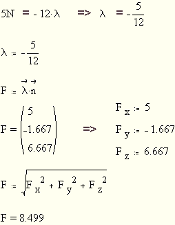 Die Kraft F ist kollinear zum Normalvektor n