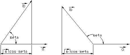Das Skalarprodukt zweier Vektoren ist gleich dem Produkt aus den Beträgen der Vektoren und dem Kosinus des eingeschlossenen Winkels.(Siehe Skizze)