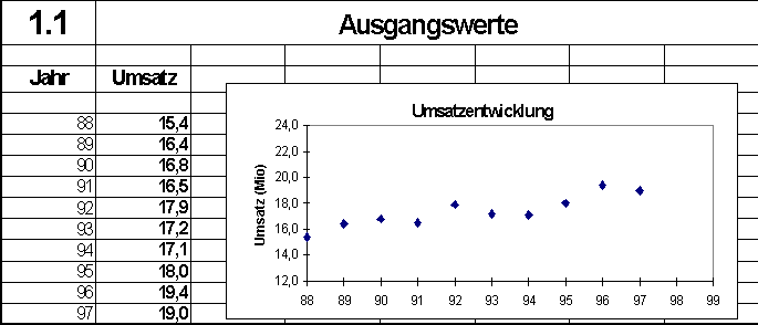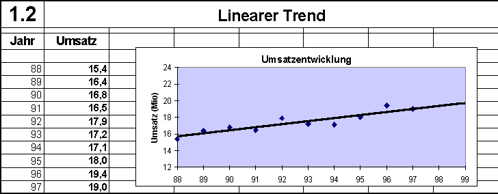 Es sei eine Umsatzstatistik über mehrere Jahre verfügbar und der Trend für eine mögliche zukünftige Entwicklung abzuschätzen.