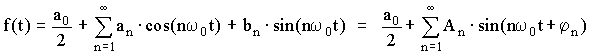 erhält man schließlich die komplexe Fourierreihe (im Amplitudenspektrum eine Darstellung nach "positiven" und "negativen" Frequenzen)