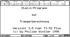 Das Programm ist sehr speicherintensiv. Da der TI-92 leider nur 10 MHz hat, dauert