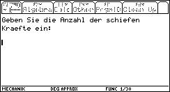 Zuerst muß die Anzahl der schiefen Kräfte, der Rechteckslasten und der Dreieckslasten eingeben werden: |