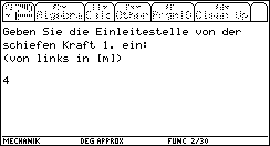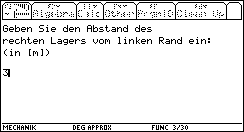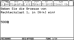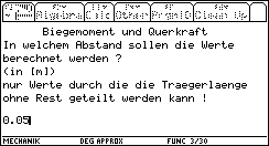 Dazu muß das Programm die Gesamtträgerlänge, die größte Kraft, und den Abstand wissen, in welchem die Werte berechnet werden sollen: |