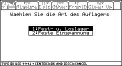 Man muß auswählen ob der Träger fest eingespannt ist, oder ob er auf einem Fest- und Loslager aufliegt. |
