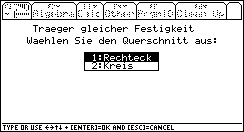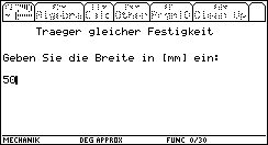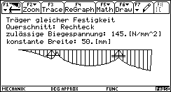 Zum Abschluß berechnen wird noch einen Träger gleicher Festigkeit. Das Ergebnis wird anschließend wieder graphisch ausgegeben. |