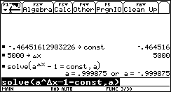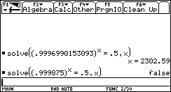 Diese Gleichung lässt sich normalerweise nur mit Hilfe des Logarithmus lösen, der aber bei der Einführung der Exponentialfunktion und deren Eigenschaften zu diesem Zeitpunkt den Schülern noch nicht bekannt ist.