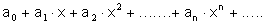 Zur Ermittlung der Potenzreihe bildet man zunächst die Folge mit den Potenzen der Variablen x und wandelt diese wiederum in einen Vektor um. Abschließend bildet man das Skalarprodukt der beiden Vektoren und erhält die Potenzreihe. |