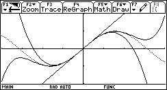 Zum Abschluss stellen wir die Funktion sinx und die 3 Taylorpolynome in Tabellenform dar. Dabei wählen wir eine Schrittweite von 0,1 rad.t1(x) :rad ( 14,0°)