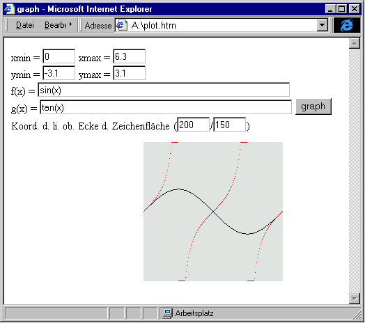 Funktionsplotter für Web-Browser gibt es schon Dutzende im Internet, diese sind aber mit Hilfe von Java-Applets realisiert. Applets sind fertige, kompilierte Java-Programme, bei denen der Quelltext nicht mehr erkennbar ist.