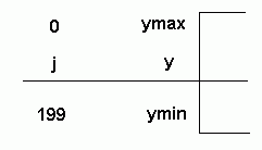y - ymax = (ymin - xmax)/(199 - 0) * (j - 0) bzw. j - 0 = (199 - 0)/(ymin