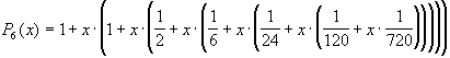 Es ist also gelungen, die Funktion ex für beliebiges x auf 10 Stellen genau zu berechnen und es werden dazu nur 2 Multiplikationen und 3 Divisionen sowie 15 vorausberechnete und gespeicherte Konstanten benötigt!