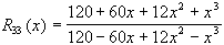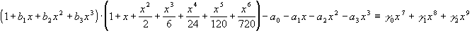 Koeffizientenvergleich über Grad 0 bis 6 führt auf 7 lineare Gleichungen für die ai und bi (b0 = 1) und man erhält (nach Erweiterung des Bruches mit 120)