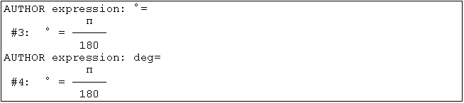 Der Wert für die von DERIVE vordefinierte Konstante ° bzw. deg: