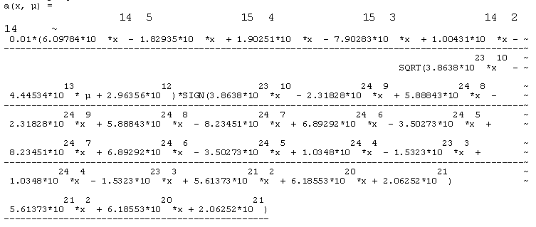 Dieser große unhandliche Ausdruck "schreit" nach Vereinfachung! Im Zähler gibt es einen Ausdruck, von dem nur das Vorzeichen benötigt wird. Wir definieren die Hilfsfunktion h(x), das Argument der SIGN Funktion: