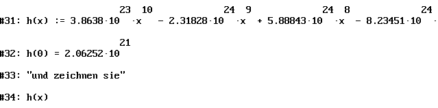 Diese Bedingungen werden nun in DERIVE eingegeben (Zahlenwerte in m):