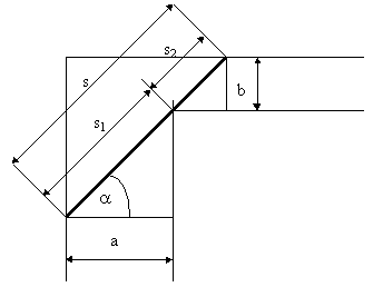 rechts macht. Die Breite des Kanals ist vor dem Knick a und nachher b.
