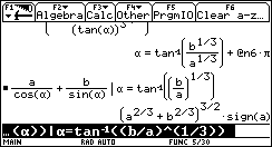 Beim Nullsetzen der ersten Ableitung wird die Gleichung auf die Form (cos a )3 . b - (sin a )3 . a = 0 umgeformt. Es ergibt sich keine Lösung für a .