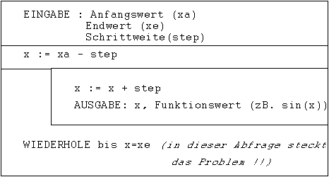 Programmiersprache (zB.PASCAL) erstellt werden. Als Eingabe sind Anfangswert,