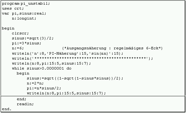 2) Berechnung von PI -unstabile Version