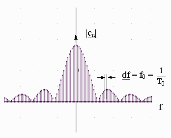 Eine Vergrößerung der Periodenlänge T0 ist gleich-bedeutend mit einer Verkleinerung der Frequenz von f0 bzw. w 0 Þ im Amplitudenspektrum des periodischen Vorganges rücken die einzelnen Spektrallinien immer näher zusammen. Durch den Grenzübergang