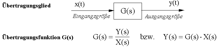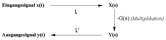 Bei Kenntnis der Übertragungsfunktion G(s) kann daher nach dem folgenden Schema für jedes Eingangssignal x(t) das Ausgangssignal y(t) über die Laplacetransformation berechnet werden. Es ist dies ein ganz analoger Vorgang, wie er als "komplexe Methode in der Wechselstromtechnik" bekannt ist.