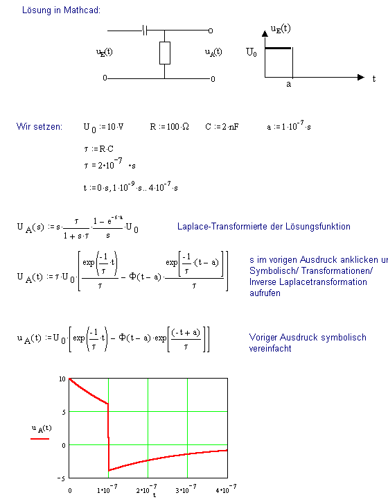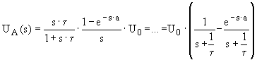Einsetzen für UE(s) und setzen von t = R× C ergibt schließlich die Laplace-Transformierte der Lösungsfunktion: