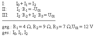 Nach Anwendung des OHMschen Gesetzes und der KIRCHHOFFschen Regeln gelangten wir zu folgendem linearen Gleichungssystem: