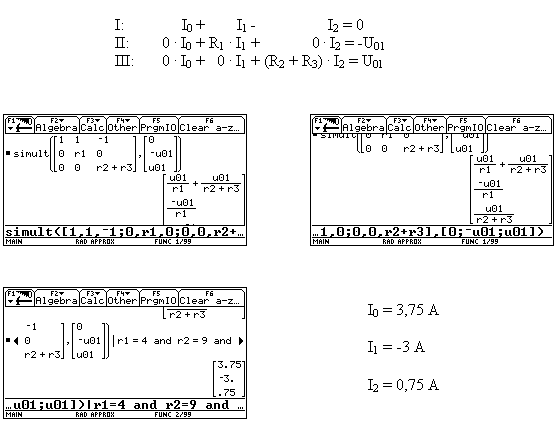 | Lineare Gleichungssysteme mit dem TI-92 in der Elektrotechnik (Schülerprojekt) |