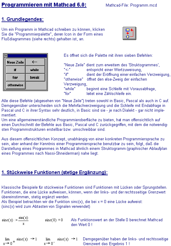 | Programmieren mit Mathcad 6.0 Fächerübergreifende Bezüge |