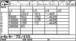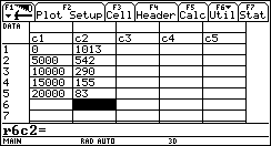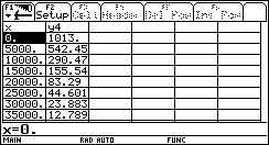 Um einen ersten Eindruck von der Kurve, die sich aus obigen Werten ergibt, zu erhalten; werden zunächst die Werte in den Ti-92 Plus eingegeben.
