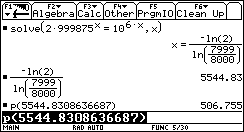Diese Gleichung lässt sich normalerweise nur mit Hilfe des Logarithmus lösen, der aber bei der Einführung der Exponentialfunktion und deren Eigenschaften zu diesem Zeitpunkt den Schülern noch nicht bekannt ist.