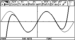Graphische Darstellung der Potenzreihe und der Funktion sinx. |
