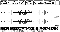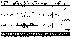 Zum Abschluss stellen wir die Funktion sinx und die 3 Taylorpolynome in Tabellenform dar. Dabei wählen wir eine Schrittweite von 0,1 rad.t1(x) :rad ( 14,0°)