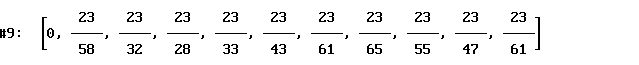 [A]uthor: v:=APPEND([0],VECTOR(23/(tmwtab¯ k¯ 3-tmwtab¯ k¯ 2),k,2,11))