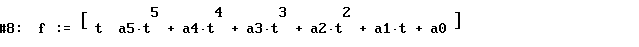[A]uthor: f:= [[t,a5*t^5+a4*t^4+a3*t^3+a2*t^2+a1*x+a0]]
