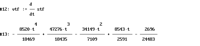 [A]uthor: vtf:=DIF(stf,t) und anschließendes [S]implify ergibt