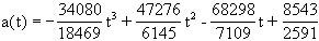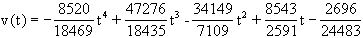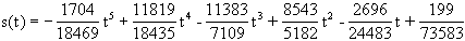 Die Näherungsfunktionen für den Weg s, die Geschwindigkeit v bzw. die Beschleunigung a in Abhängigkeit von der Zeit t haben für dieses Beispiel die folgende Gestalt: