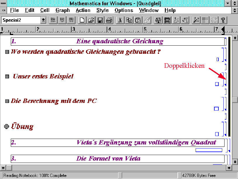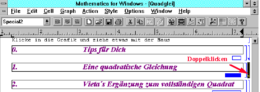 Wir wählen nun das interessierende Kapitel durch Doppelklick aus. Z.B." Eine quadratische Gleichung" .