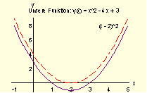 Du kannst dies so untersuchen: Miß an jeder beliebigen Stelle unserer Kurve y(x) = x^2 - 4 x + 3 den vertikalen Abstand zur Kurve y(x) = (x-2)^2.