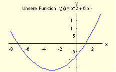 PlotLabel -> "Unsere Funktion: y(x) = x^2 - 4 x + 3",