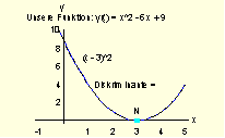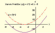 PlotLabel -> "Unsere Funktion: y(x) = x^2 - 6 x + 9",